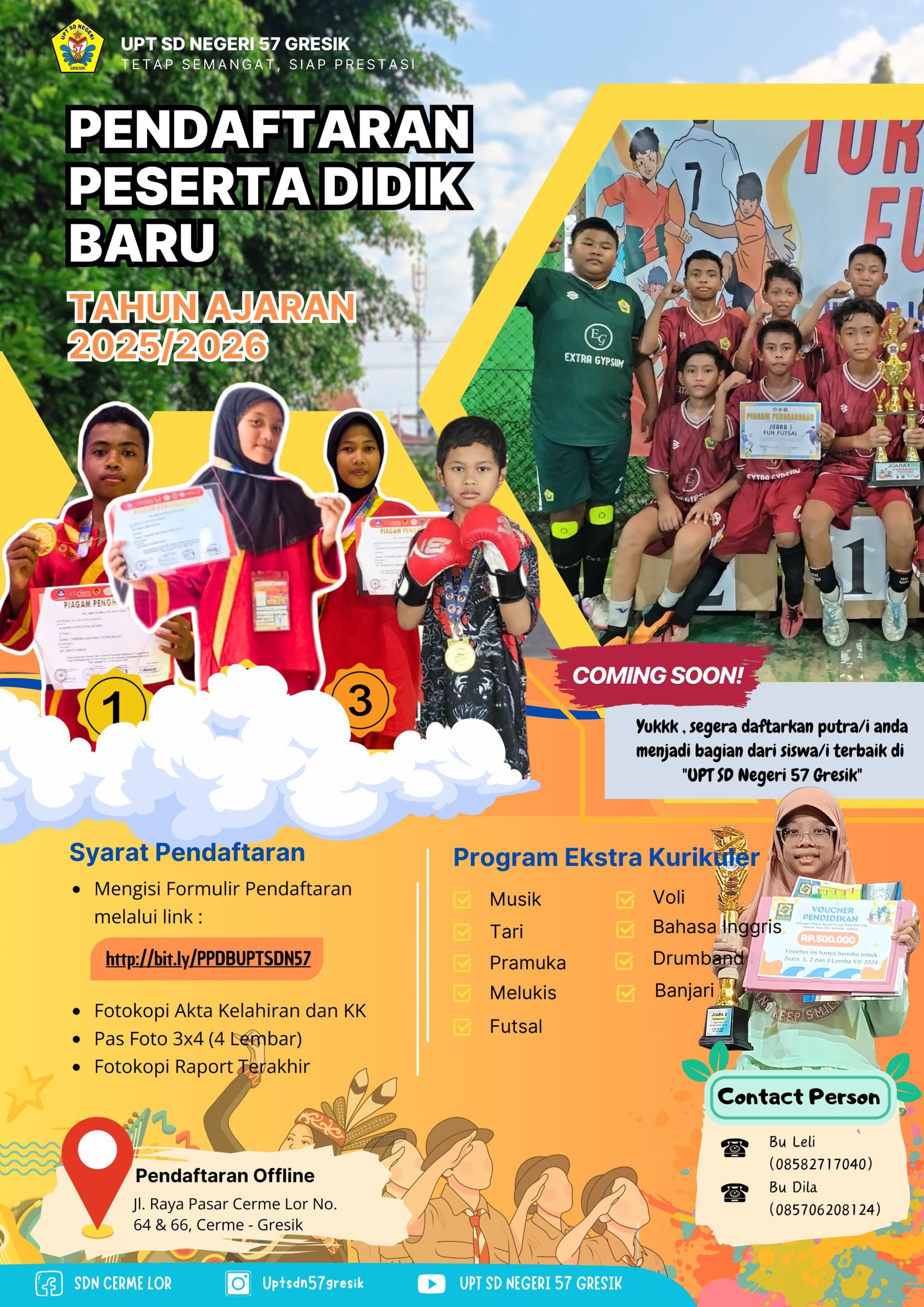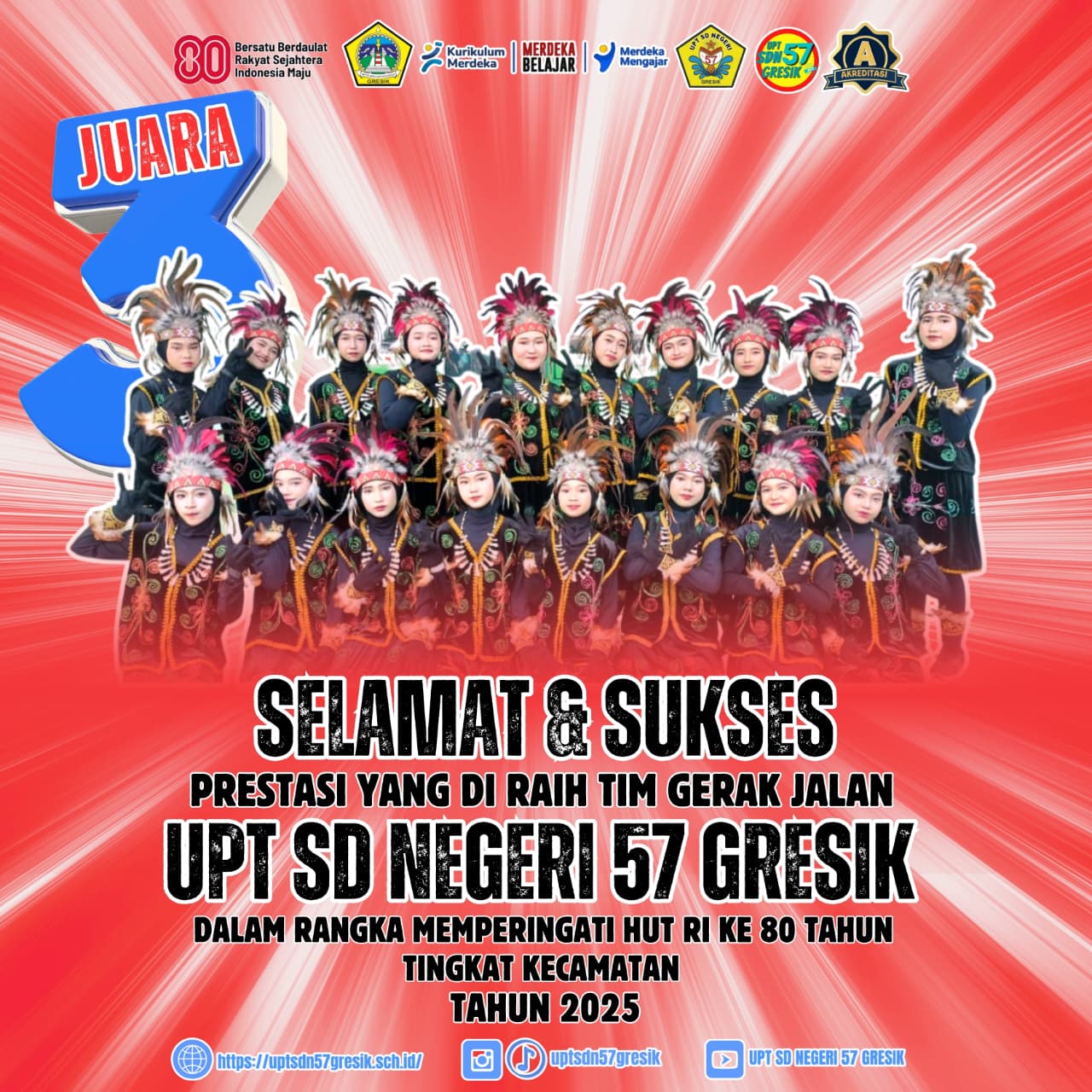 Assalamu'alaikum wr.wb. Alhamdulillahirabbilalamin, puji dan syukur kami panjatkan kahadirat Allah SWT atas limpahan rahmat, hidayah, dan kenikmatannya, sehingga kami dapat merealisasikan Website UPT SD Negeri 57 Gresik. Website ini mudah-mudahan dapat membuka jalur-lajur informasi secara utuh dan meyeluruh khususnya perkembangan dalam dunia pendidikan di era global dan dapat meningkatkan pelayanan pendidikan serta meningkatkan kualitas pembelajaran peserta didik yang akhirnya dapat meningkatkan pelayanan kepada semua pihak, utamanya steak holders UPT SD Negeri 57 Gresik.