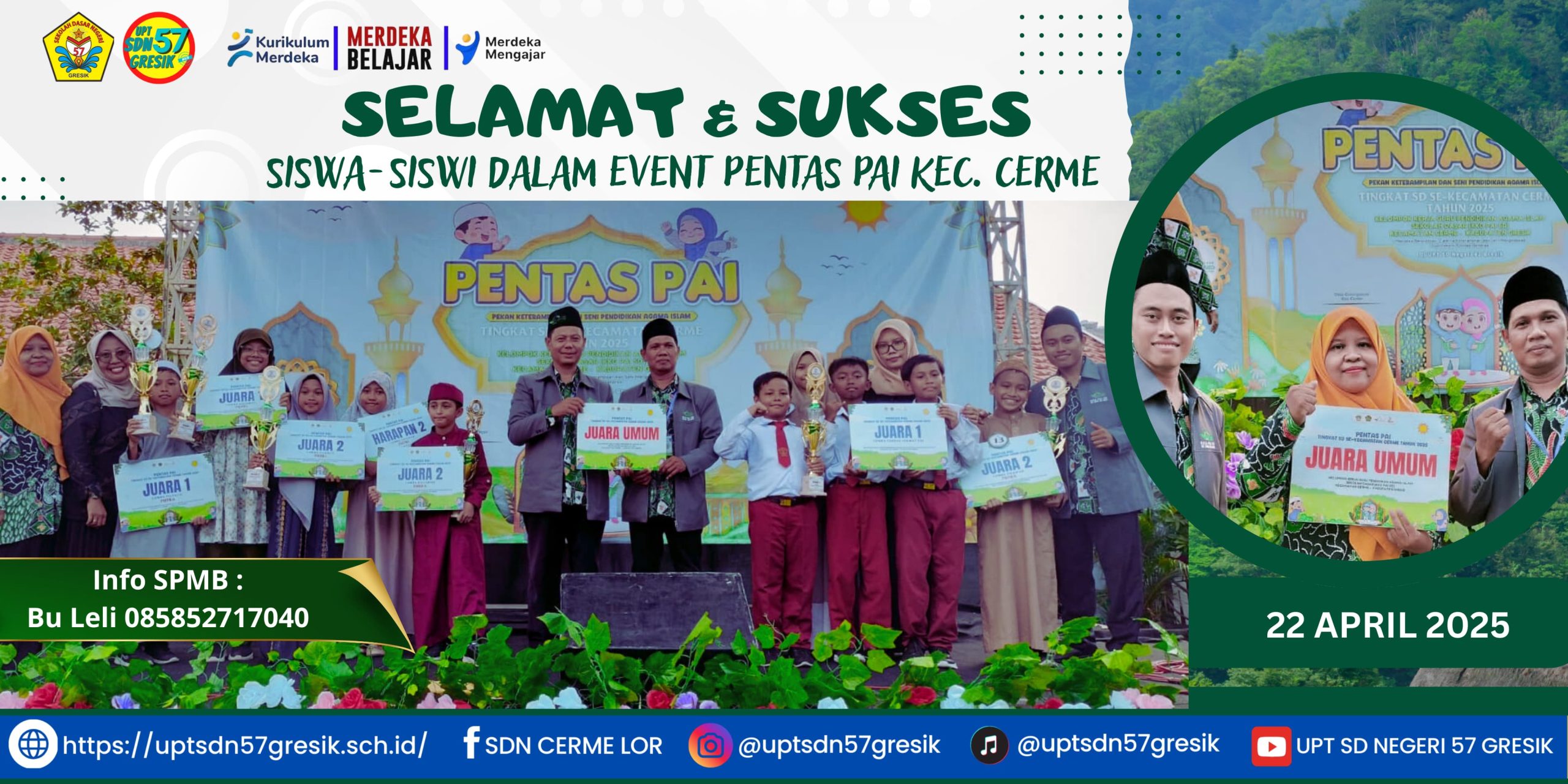 UPT SD Negeri 57 Gresik berhasil meraih Juara 3 Lomba Gerak Jalan yang diselenggarakan oleh KECAMATAN CERME dalam rangka memeriahkan HUT RI ke-80 tahun pada hari Sabtu, 23 Agustus 2025 yang diikuti oleh siswa/i terbaik di seluruh lingkup sekolah se-Kecamatan Cerme . Penghargaan dan apresiasi tersebut disambut hangat oleh Kepala UPT SD Negeri 57 Gresik, […]